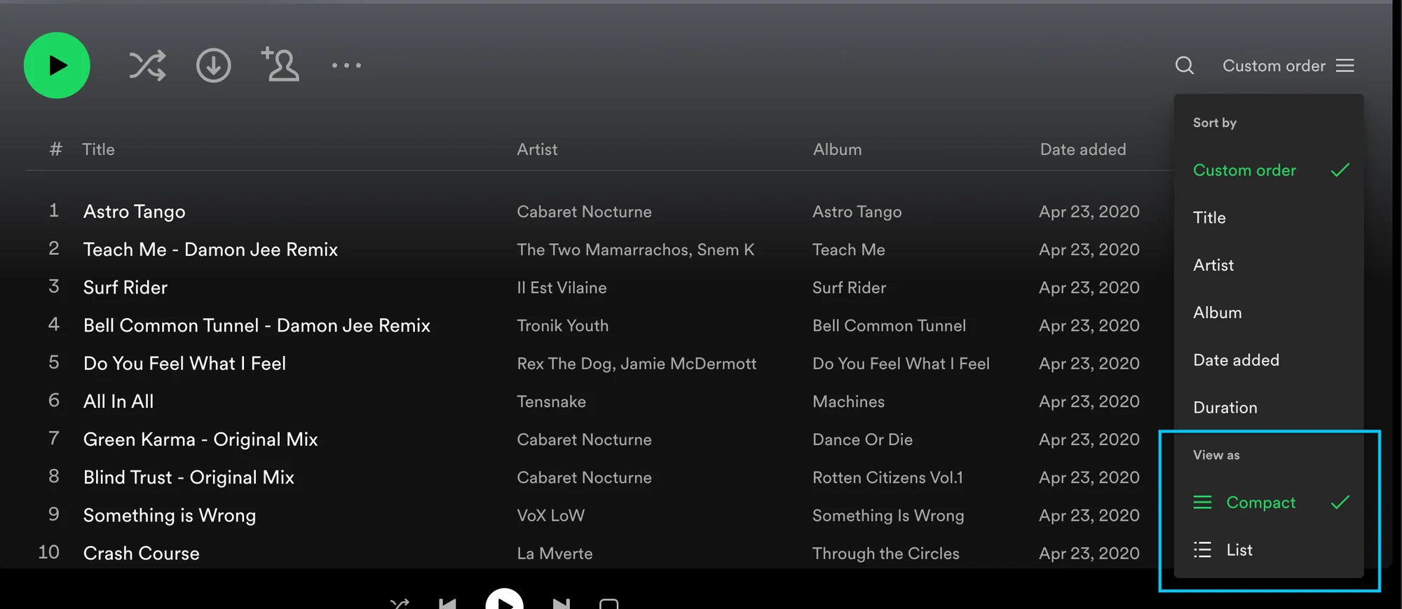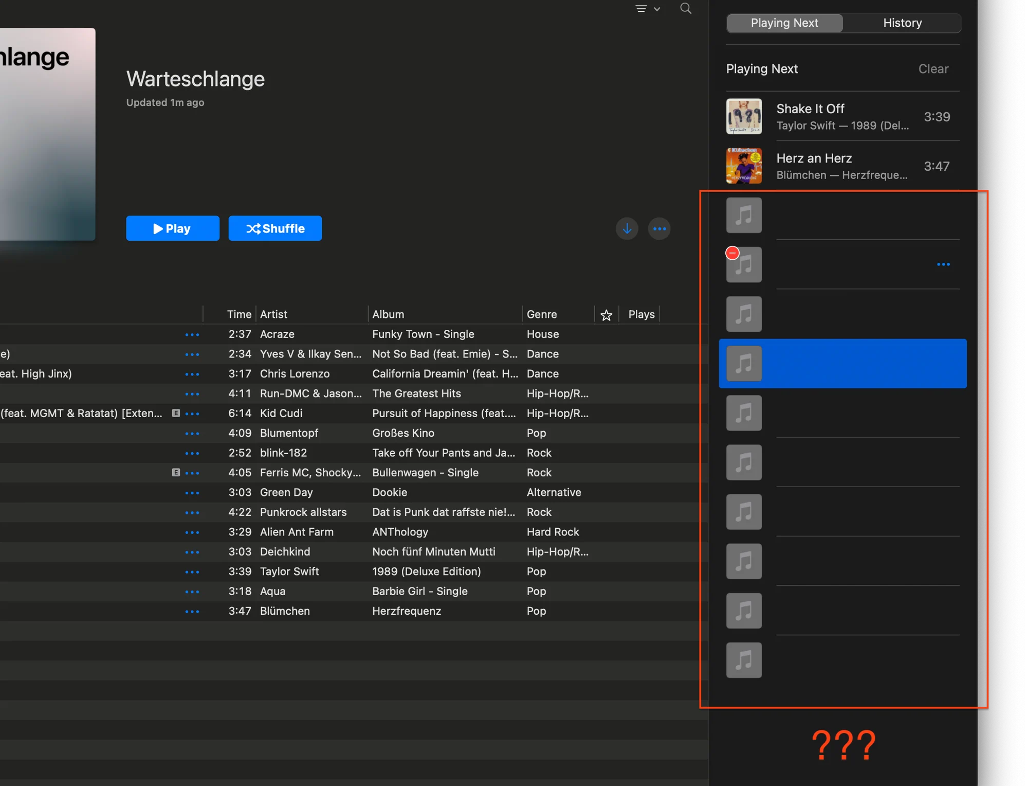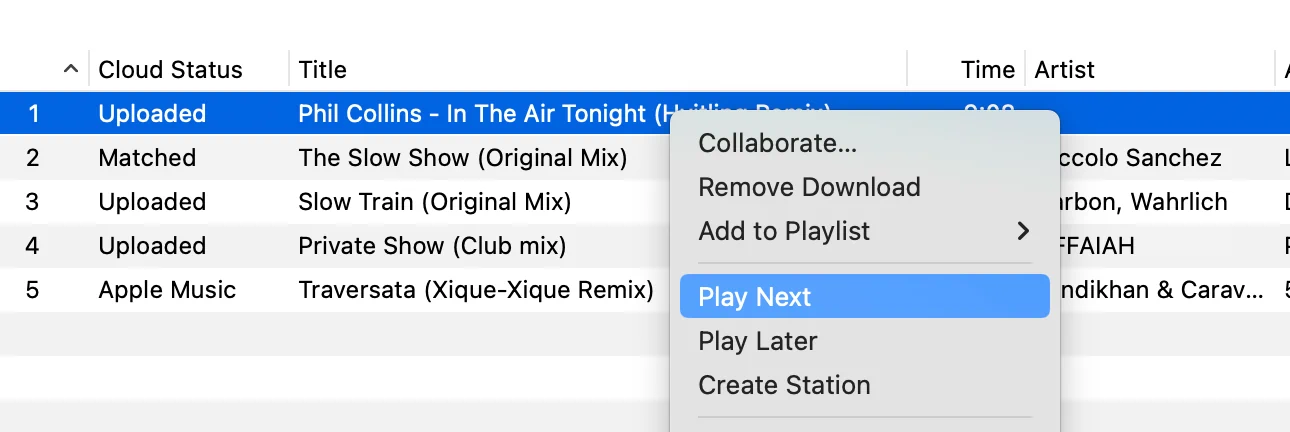 Eventually, I ended up creating a regular playlist which I would add tracks to and reorder, as I hoped this would be a workaround for the problematic queue behavior. But still, something was completely off. The playlist on the Mac just didn’t reliably sync with the Apple TV. The only way to be certain that the desired track would play was double-clicking it (which would play it immediately).