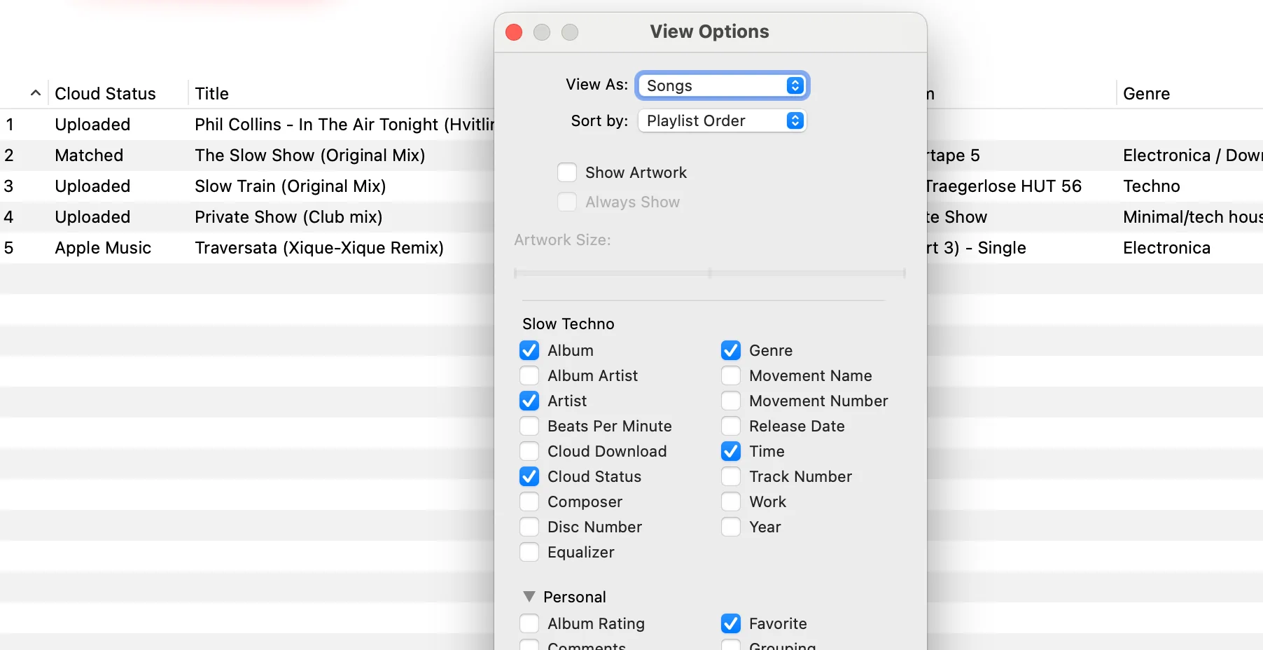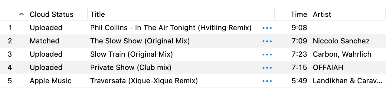 You can easily check the cloud syncing status by adding the “Cloud Status” column to a playlist, it can be one of: